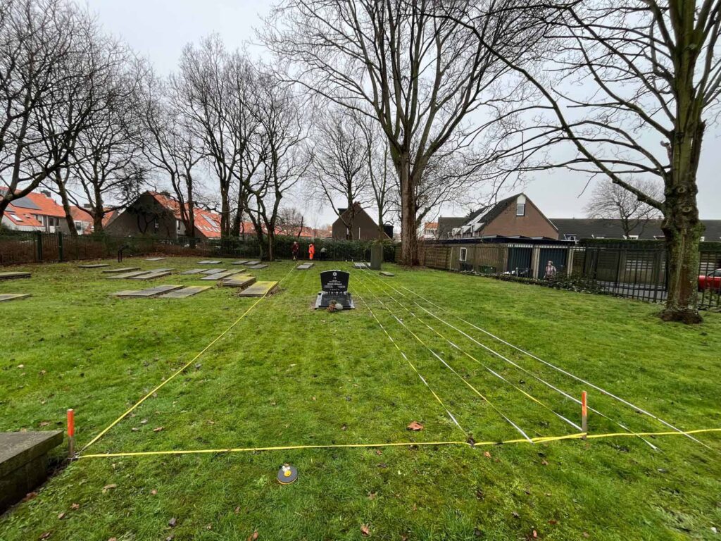 Met dank aan en medewerking van de T.U. Delft zijn er begin 2026 non destructieve onderzoeken verricht en zijn de alle plaatsen waar mensen begraven liggen zichtbaar gemaakt. Op de bijgaande foto’s kunt u zien hoe deze werkzaamheden zijn verricht.